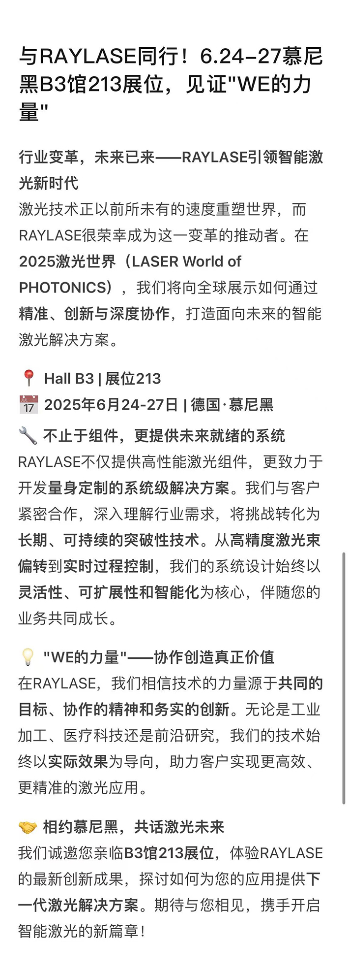 【与RAYLASE同行!6.24-27慕尼黑B3馆213展位,见证WE的力量